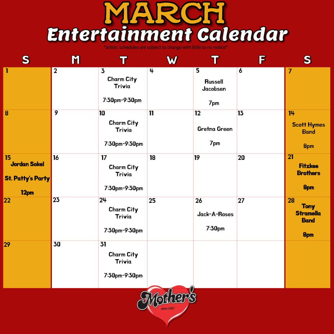 Live Music: With a cozy stage and top-notch sound system, Mother's Peninsula Grille sets the stage for live music performances every Thursday and select Saturdays. Check out our calendar below for more information!